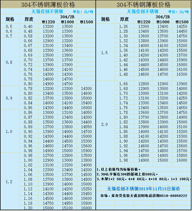2019年11月15日佳創(chuàng)304不銹鋼價格