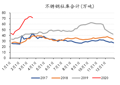 3月馬上結(jié)束,2020年的第一季度尾聲,我們不難想象不銹鋼現(xiàn)貨端如此的低壓態(tài)勢(shì)多會(huì)讓不銹鋼流通端口蓄水池能力減弱,鋼貿(mào)商會(huì)持續(xù)減少手中庫存,減少與鋼廠之間的訂單,持續(xù)保持快進(jìn)快出的經(jīng)營策略。加之一季度不銹鋼社會(huì)庫存高企,下游消費(fèi)集中性需求交付進(jìn)入尾聲,不銹鋼行情將繼續(xù)承壓。