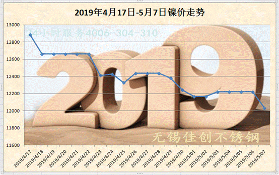 5月7日倫鎳收12030跌170跌幅1.39%。倫鎳的震蕩下行,疊加五月以來成交一直平淡,今日304冷軋國營資源下調(diào)50元/噸。