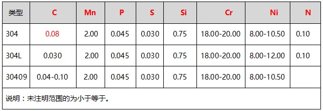 其實按鉻鎳的含量都是304不銹鋼,成分中都是含18%的鉻(Cr),8%的鎳(Ni),但是主要的區別在于含碳量的不同。