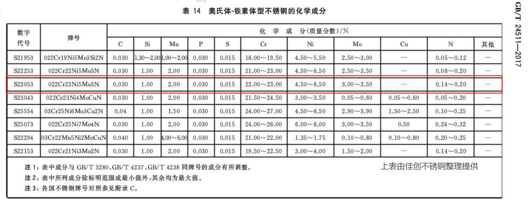 S22053雙相不銹鋼,是國內對承壓設備用不銹鋼的一種稱呼,它的數字代號為S22053,它和2205的牌號是一樣的,也是022Cr23Ni5Mo3N。不同之處在于,S22053雙相鋼是按照GB-T 24511-2017 《承壓設備用不銹鋼和耐熱鋼鋼板和鋼帶》標準生產的,主要用于壓力容器等承壓設備。鋼廠如果要生產S22053必須要取得相應的生產認證,生產出來的2205雙相鋼才能被稱為S22053,否則只能叫2205雙相不銹鋼。