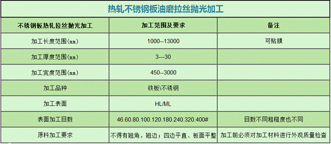 我公司304/201/316L等各種材質的熱軋不銹鋼拉絲拋光加工和銷售,也可來圖來樣按照您的需求訂制,單張即可供貨。